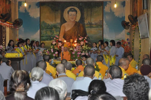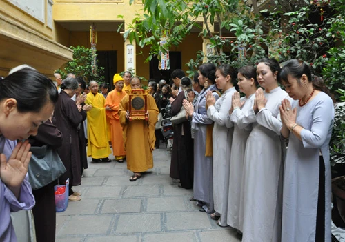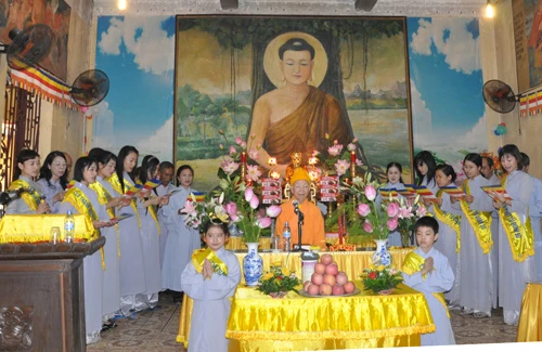 Nhân dịp này, thanh thiếu nhi Phật tử sinh hoạt tại chùa Quán Sứ và đoàn nghệ thuật Phật tử Thiện Tâm đã dâng hoa và biểu diễn các tiết mục văn nghệ chúc mừng ngày chư Tăng khai pháp.