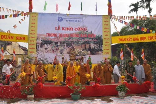 TT. Thích Bảo Nghiêm diễn từ khai mạc lễ khởi công trùng tu Đại hùng bảo điện Tổ đình Bồ Đề. Thượng toạ đã giới thiệu lại lịch sử chùa Bồ Đề: “Chùa thuộc địa phận phường Bồ Đề, quận Long Biên, Hà Nội. Nơi đây vào thế kỷ 15 là đại bản doanh của nghĩa quân Lam Sơn chống quân Minh xâm lược. Năm 1874, Thiền sư Thích Nguyên Biểu tới bến Bồ Đề trên bờ sông Hồng, nhìn qua bên kia thành Thăng Long, Ngài thấy nơi đây cảnh trí thiên nhiên thanh nhã, địa danh Bồ Đề lại đồng danh với quả vị mà người tu Phật đều mong đạt tới. Ngài quyết định nhận lời thỉnh cầu của nhân dân địa phương, khai sơn phá thạch dựng chùa, đặt tên là “Thiên Sơn Cổ Tích Tự” mà hiện nay mọi người quen gọi là chùa Bồ Đề. Chùa Bồ Đề là nơi quy tụ nhiều vị danh tăng về trụ trì, đây cũng là nơi đào tạo Tăng Ni của Phật giáo miền Bắc. Đặc biệt là nơi Đức Đệ nhị Pháp chủ Đại lão Hoà thượng Thích Tâm Tịch đã từng trụ trì trong một thời gian dài và hiện nay ngôi chùa do Tỳ kheo ni Thích Đàm Lan trực tiếp trông nom tu sửa…và đến ngày hôm nay qua nhiều lần họp bàn và nhất trí phải trùng tu lại ngôi Đại hùng bảo điện để đáp ứng nhu cầu tu học của Tăng Ni và tín đồ Phật tử ngày càng đông đảo, xứng đáng là cơ sở Phật giáo góp phần vào trang sử huy hoàng của đạo Phật Việt Nam thời hiện đại”.