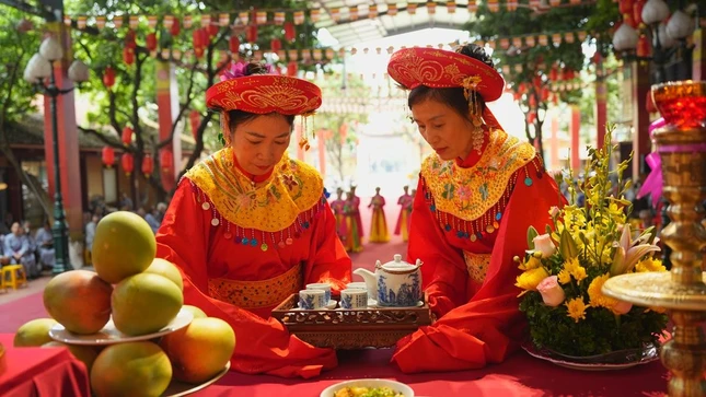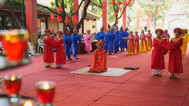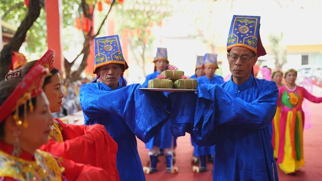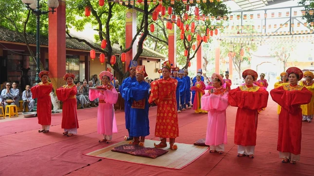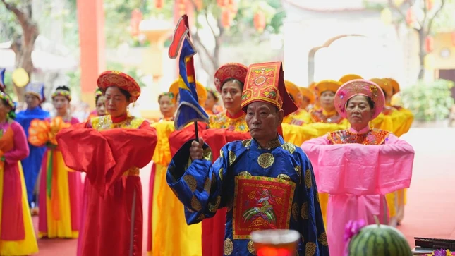 Hội chúng lắng đọng với bài văn tế Tổ Hùng Vương được ông Nguyễn Đình Tuất, thay mặt Chánh chủ tế cất lên trong sự nhất tâm thành kính; nguyện sống xứng đáng với công đức Tổ tiên, gìn giữ và phát huy những giá trị tốt đẹp của dân tộc trong đời sống hôm nay.