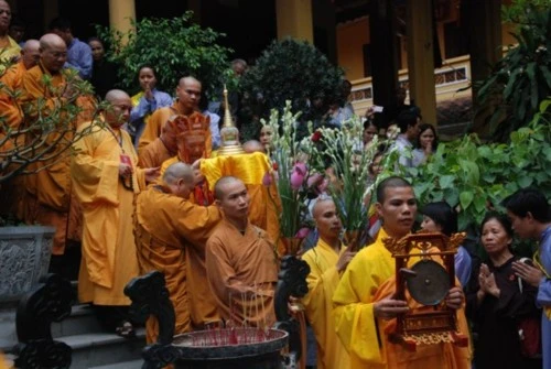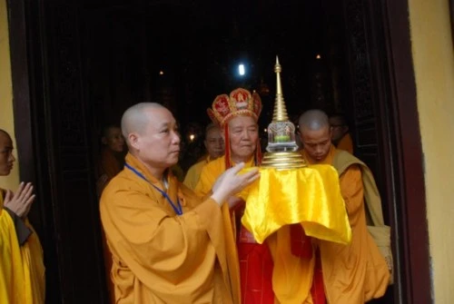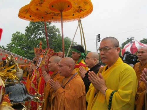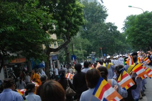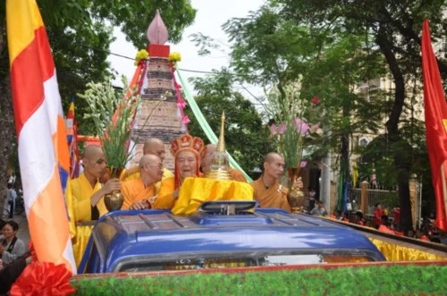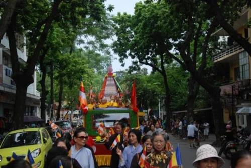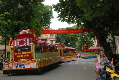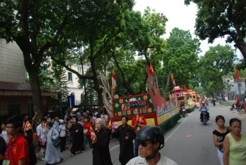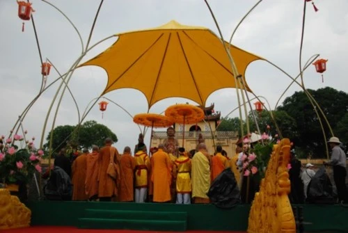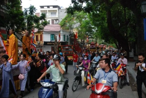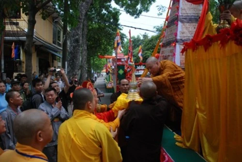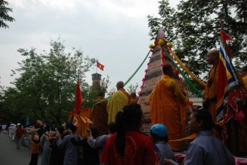 (GNO-Hà Nội): Chiều nay 27-7, trong khuôn khổ của đại lễ Phật giáo kỷ niệm 1000 năm Thăng Long - Hà Nội, Trung ương Giáo hội Phật giáo Việt Nam đã long trọng tổ chức lễ cung rước Xá lợi Phật từ chùa Quán Sứ về Hoàng thành Thăng Long.