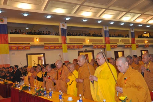 Sau lễ dâng hương cầu quốc thái dân an và cầu siêu cho các nạn nhân trong trận động đất và sóng thần tại Nhật Bản, chư tôn đức và Tăng Ni, Phật tử về dự Đại lễ và Giáo hội Phật giáo Việt