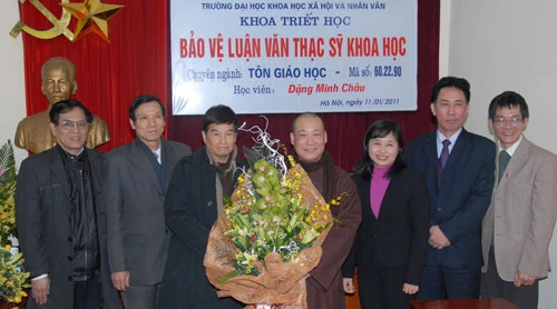 Hội đồng khoa học của học viên Đặng Minh Châu có Phó Giáo sư tiến sỹ Dương Văn Thịnh - Trường Đại học KHXHNV làm Chủ tịch Hội đồng; Tiến sỹ Nguyễn Thanh Xuân - Ban Tôn giáo Chính phủ, Tiến sỹ Đỗ Quang Hưng - Trường Đại học KHXHNV; Giáo sư Tiến sỹ Nguyễn Đức Lữ - Học viện chính trị Quốc gia HCM; Giáo sư tiến sĩ Nguyễn Anh Tuấn - Trường Đại học KHXHNV. Hội đồng khoa học đã đánh giá rất cao đề tài Mối quan hệ giữa Phật giáo và tín ngưỡng dân gian của học viên Đặng Minh Châu. Phần trình bày luận văn rất hoàn hảo, có trình chiếu minh hoạ xúc tích, trí tuệ. Hội đồng đã nhất trí đánh giá xuất sắc bản luận văn 9,8 điểm.