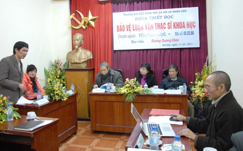 Hội đồng khoa học của học viên Dương Quang Điện có Phó giáo sư tiến sĩ Nguyễn Thuý Vân - Trường Đại học KHXHNV Chủ tịch Hội đồng; Giáo sư Nguyễn Hồng Dương - Viện nghiên cứu Tôn Giáo; Tiến sĩ Nguyễn Thanh Bình - Trường Đại học KHXHNV; Tiến sĩ Trần Thị Kim Oanh - Trường Đại học KHXHNV. Đây là một bản luận văn được Hội đồng khoa học đánh giá cao về lý luận và thực tiễn, có cái nhìn sâu sắc trên quan điểm triết học của Phật giáo thẩm thấu trong xã hội một cách chân thực. Hội đồng đã nhất trí cho bản luận văn 9,5 điểm.
