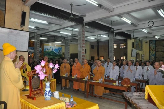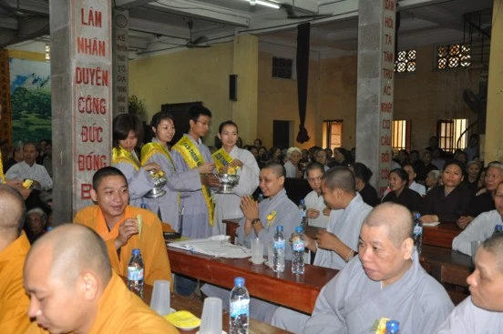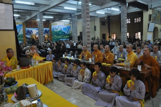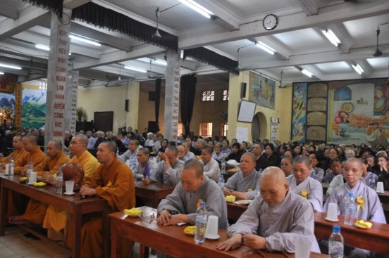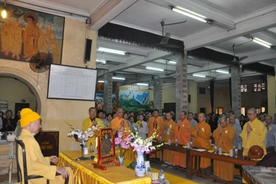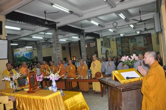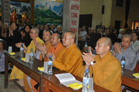 Chứng minh buổi lễ có HT Thích Thanh Tứ - Phó chủ tịch thường trực HĐTS, TT Thích Thanh Nhiễu - Phó chủ tịch HĐTS, chư tôn đức HĐTS cùng đông đảo Phật tử Hà Nội và các tỉnh thành