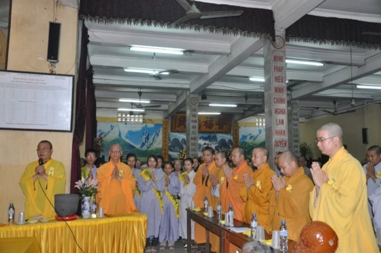 Thay mặt chư Tôn đức, TT Thanh Nhiễu – Chánh Duy na dâng lời tác bạch, báo cáo tổng kết tu học và sinh họat chư Tăng trong 3 tháng an cư kiết hạ .