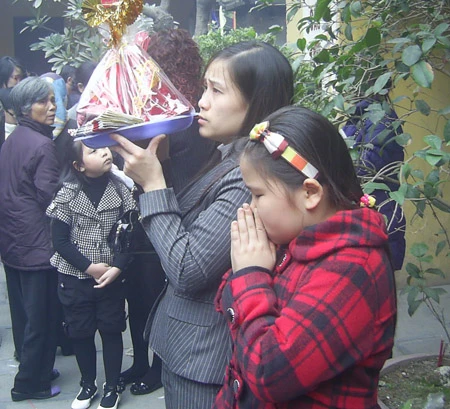 May mắn lắm, người đi chùa mới có thể vào đến tận bên trong. Nhiều mâm lễ phải bái vọng ở ngoài sân rồi ra về với lời an ủi: “cái chính là tấm lòng thành”!