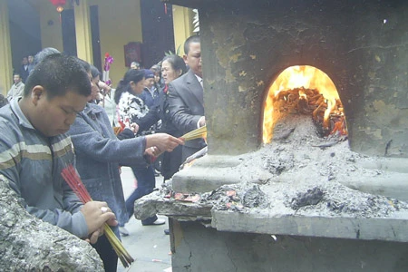 Lò hóa vàng ở chùa Quán Sứ hừng hực đỏ lửa suốt mấy ngày tết.