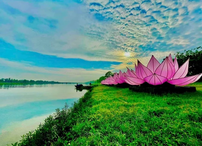 Sau lễ chú nguyện của Hòa thượng và các Tăng Ni sinh viên, các kỹ thuật lần lượt dùng thuyền kéo từng đóa sen ra định vị giữa dòng sông Hương thơ mộng của cố đô, đoạn giữa cầu Phú Xuân và cầu Bạch Hổ.