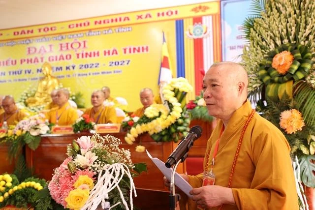 Phát biểu khai mạc, Hòa thượng Thích Bảo Nghiêm, Trưởng ban Tổ chức Đại hội nhấn mạnh Đại hội đại biểu GHPGVN tỉnh Hà Tĩnh khóa IV, nhiệm kỳ 2022-2027 với tinh thần “Kỷ cương – Trách nhiệm – Đoàn kết và phát triển”, bằng trí tuệ Bát Nhã của người con Phật, nhìn thẳng vào thực tiễn, đại hội sẽ tập trung thảo luận, rút ra những ưu điểm để phát huy, những hạn chế tồn tại để khắc phục, trên cơ sở đó đề ra chương trình hoạt động Phật sự trong nhiệm kỳ tới. Thông qua đại hội, chúng ta sẽ suy cử được thành phần nhân sự Ban Trị sự khóa IV, nhiệm kỳ 2022-2027 có đầy đủ uy tín, năng lực, đạo hạnh để thực hiện các công tác Phật sự mà Đại hội giao phó”.