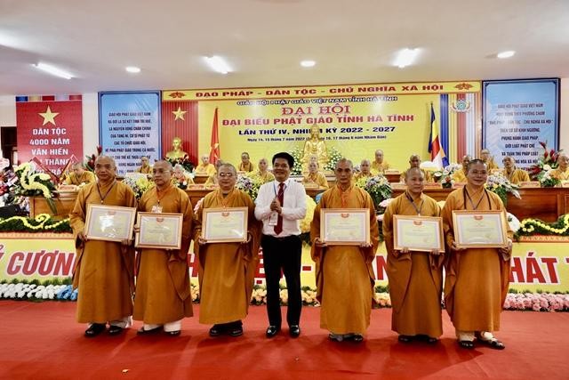 Dịp này, Thủ tướng Chính phủ, Ủy ban Trung ương MTTQVN đã tặng Bằng khen cho Ban Trị sự GHPGVN tỉnh Hà Tĩnh, các cá nhân; Hội đồng Trị sự GHPGVN, UBND, UBMTTQ tỉnh Hà Tĩnh đã tặng nhiều Bằng tuyên dương công đức, Bằng khen đến các tập thể, cá nhân Ban Trị sự GHPGVN tỉnh Hà Tĩnh đã có những đóng góp tích cực cho các hoạt động Phật sự trong nhiệm kỳ qua.