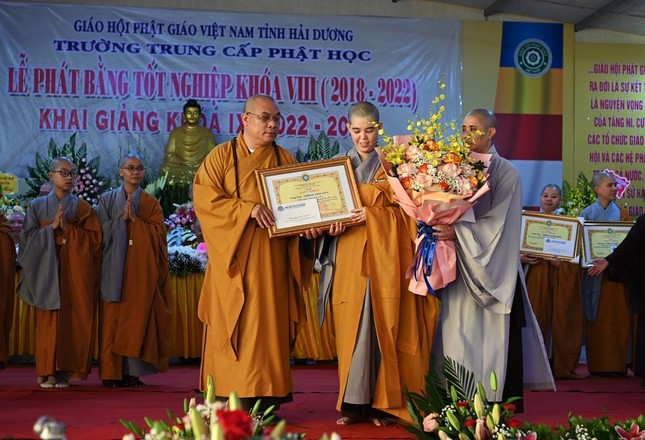 GNO - Sáng 23-9, tại chùa Đống Cao (TP.Hải Dương), Ban Giám hiệu Trường Trung cấp Phật học tỉnh Hải Dương đã long trọng tổ chức lễ phát bằng tốt nghiệp khóa VIII (2018-2022) và khai giảng năm học mới - khóa IX (2022-2026).