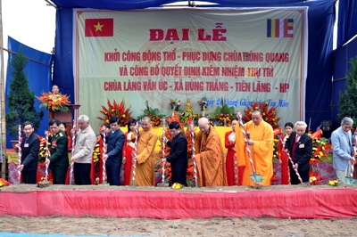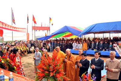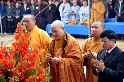 Thượng tọa Thích Quảng Tùng - Phó Chủ tịch HĐTS kiêm Trưởng Ban Từ thiện xã hội TƯ GHPGVN, Phó ban Thường trực Ban Trị sự Phật giáo thành phố Hải Phòng cùng đông đảo Chư tôn đức Tăng ni Thành hội Phật giáo Hải Phòng, lãnh đạo huyện Tiên Lãng, xã Hùng Thắng và bà con nhân dân Phật tử đến dự
