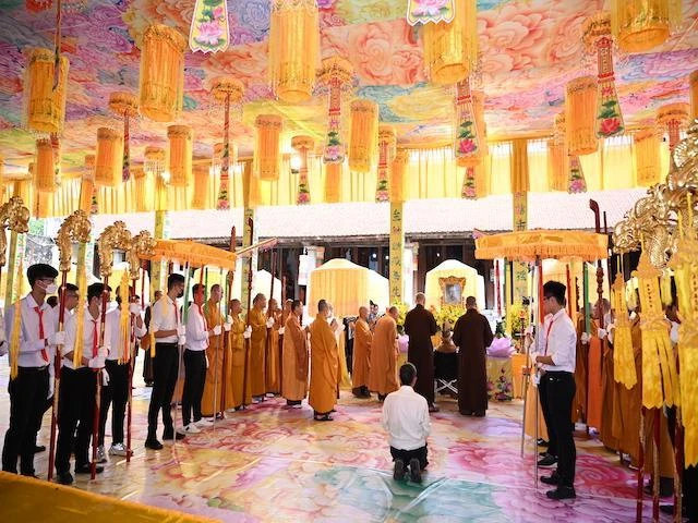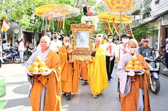 | Đoàn rước linh cốt cố Đại lão Hòa thượng về chùa Nam Hải |
