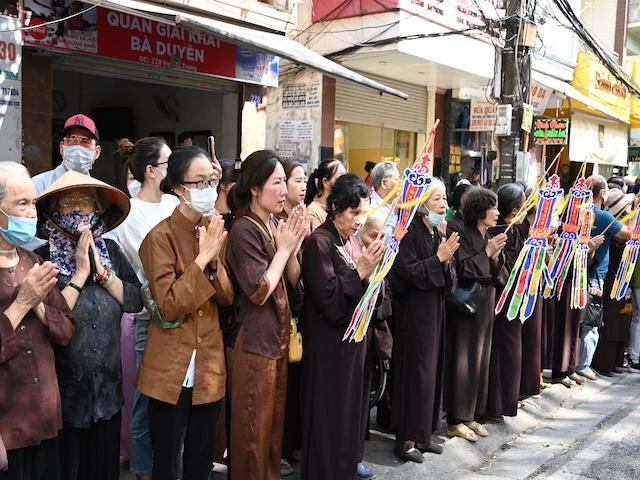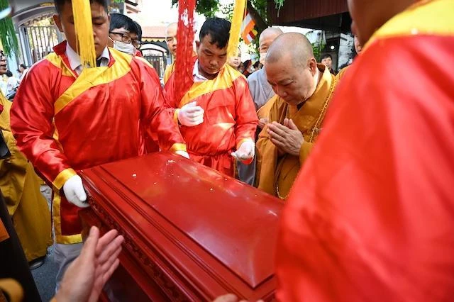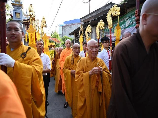 GNO - Sáng nay, 19-11 (nhằm ngày 26-10-Nhâm Dần), Ban Trị sự GHPGVN TP.Hải Phòng đã thành kính tổ chức lễ cung rước linh cốt cố Đại lão Hòa thượng Thích Trí Hải từ chùa Vĩnh Phúc (chùa Trữ Khê, quận Kiến An) về chùa Nam Hải (quận Lê Chân) để nhập bảo tháp.