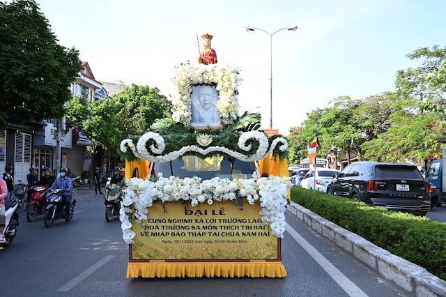 Đoàn xe cung rước linh cốt cố Đại lão Hòa thượng Thích Trí Hải đã đi qua một số tuyến phố chính của TP.Hải Phòng như: phố Trường Chinh - Trần Nguyên Hãn - Tô Hiệu - Cầu Đất - Hai Bà Trưng. Sau đó đoàn xe dừng lại ở phố Hai Bà Trưng và rước bộ về chùa Nam Hải.