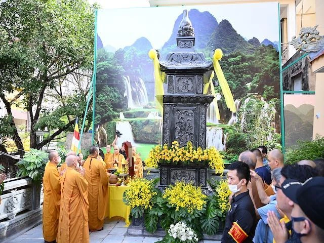 Tại đây, chư tôn đức đã cử hành nghi thức nhập bảo tháp linh cốt cố Đại lão Hòa thượng Thích Trí Hải và tổ chức lễ cúng dường chư Phật, chư Tổ, cung tiến Giác linh cố Đại lão Hòa thượng Thích Trí Hải trong không khí trang nghiêm, thành kính.