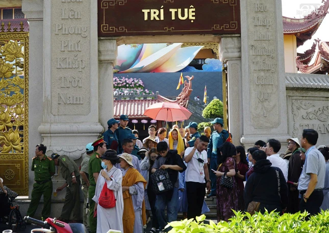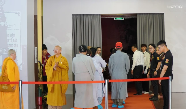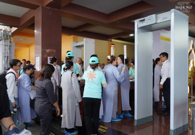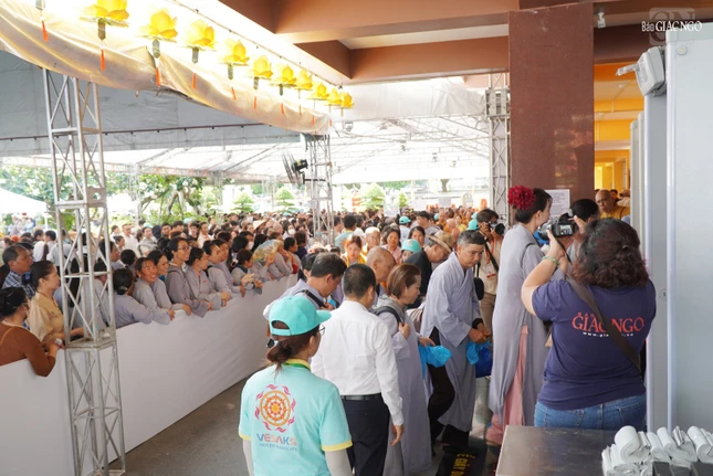 Dòng người thành kính, trang nghiêm thực hiện công tác an ninh, xếp hàng vào chiêm bái xá-lợi Trái tim bất diệt của Bồ-tát Thích Quảng Đức - biểu tượng cho tinh thần từ bi, trí tuệ của Phật giáo Việt Nam, với bao niềm xúc động thiêng liêng.