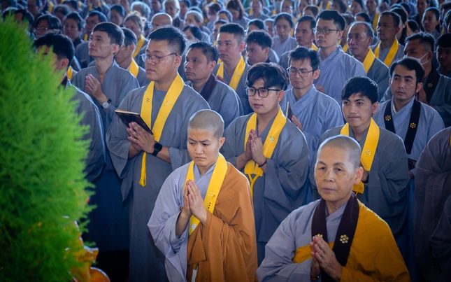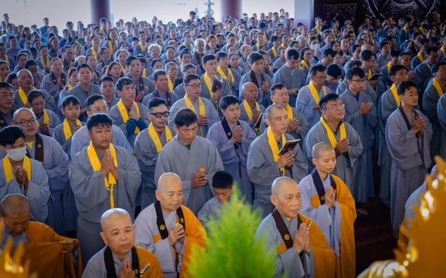 GNO - Sáng nay, mùng 3 Tết Bính Ngọ (19-2-2026), tại chùa Huê Nghiêm (phường An Khánh, TP.HCM), chư Tăng Ni các tự viện và hàng ngàn hành giả Đạo tràng Pháp Hoa đã trở về đảnh lễ, khánh tuế Đại lão Hòa thượng Thích Trí Quảng - bậc Thầy khai mở Đạo tràng Pháp Hoa tại Việt Nam, nhân dịp đầu xuân mới.