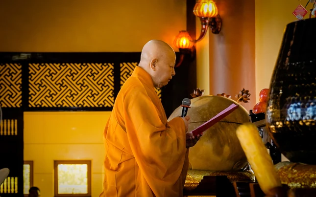 Với sự hướng dẫn của Hòa thượng Thích Lệ Trang và chư Tăng, đại chúng đã cùng tụng thời kinh Dược Sư đầu tiên trong năm mới. Sau thời kinh, Hòa thượng Thích Lệ Trang cũng đã có lời khai thị đến đại chúng, về ý nghĩa của kinh Dược Sư, các đại nguyện của Ngài cũng như nghi lễ kỳ an theo tinh thần Phật giáo.