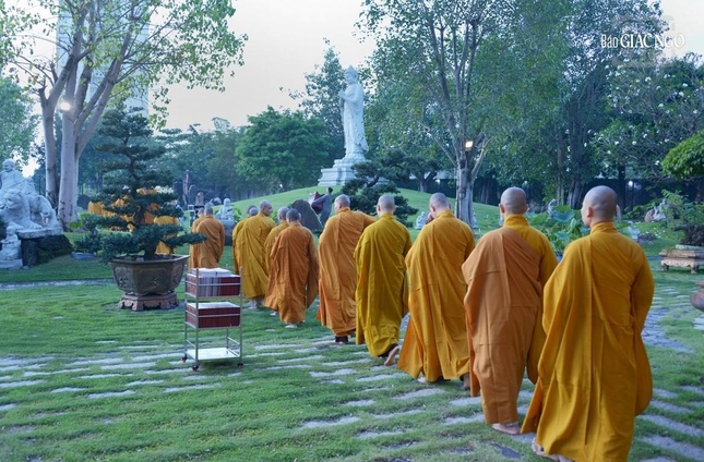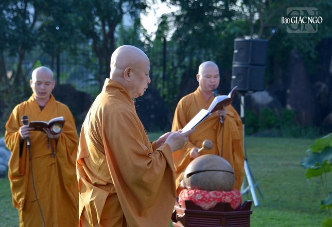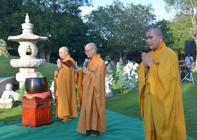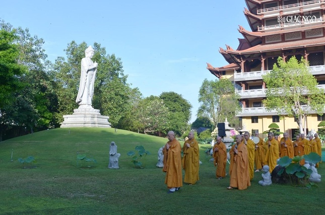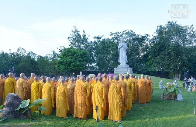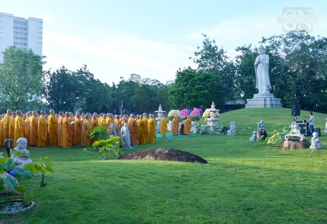 Sau khi ban huấn từ, Đức Pháp chủ quang lâm khu vườn A Di Đà niêm hương và đảnh lễ trước tôn tượng của Ngài. Hoà thượng Thích Lệ Trang, Trưởng ban Nghi lễ Trung ương, trụ trì chùa Huê Nghiêm hướng dẫn toàn thể đại chúng tụng với thời kinh A Di Đà, đảnh lễ 12 lời nguyện An Dưỡng quốc, hồi hướng an lành, âm dương cùng lợi lạc.