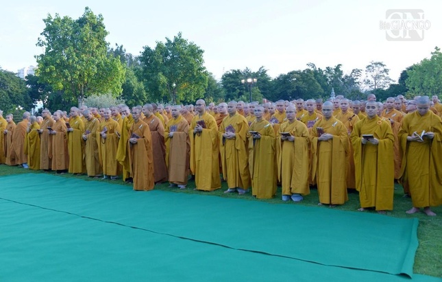 GNO - Sáng nay 17-11-Nhâm Dần (10-12-2022), hơn 3.000 Tăng Ni, Phật tử đã vân tập cử hành thời khóa tụng niệm trước tôn tượng Đức Phật A Di Đà lộ thiên trong khuôn viên chùa Huê Nghiêm - TP.Thủ Đức, TP.HCM.