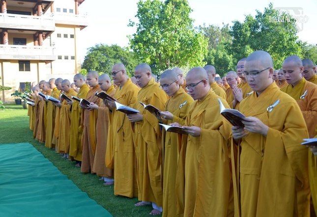 Nhân dịp này, hơn 1.000 Tăng Ni sinh viên Học viện Phật giáo VN tại TP.HCM đã trở về chùa Huê Nghiêm đảnh lễ Trưởng lão Hòa thượng Thích Trí Quảng, Đệ tứ Pháp chủ GHPGVN, Viện trưởng Học viện.