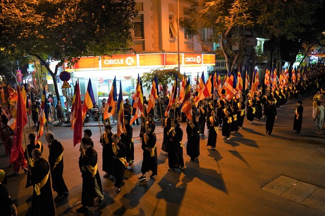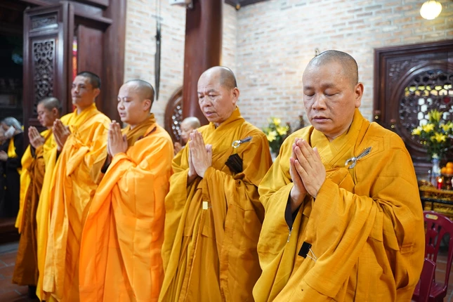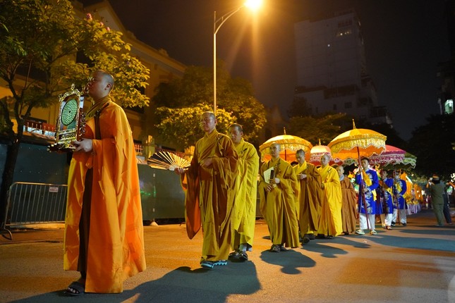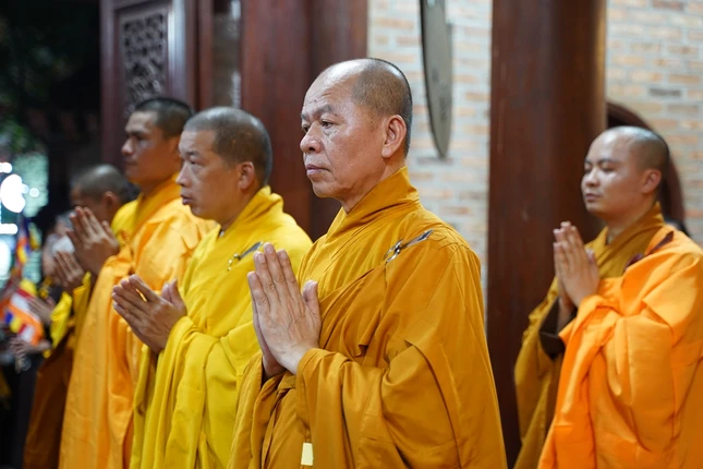 Đúng 19 giờ, sau ba hồi chuông trống Bát-nhã, Ban Nghi lễ đã cung rước chư tôn đức quang lâm chánh điện cử hành các nghi thức.