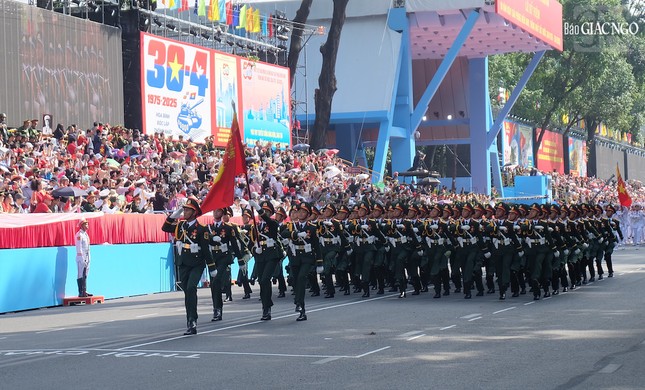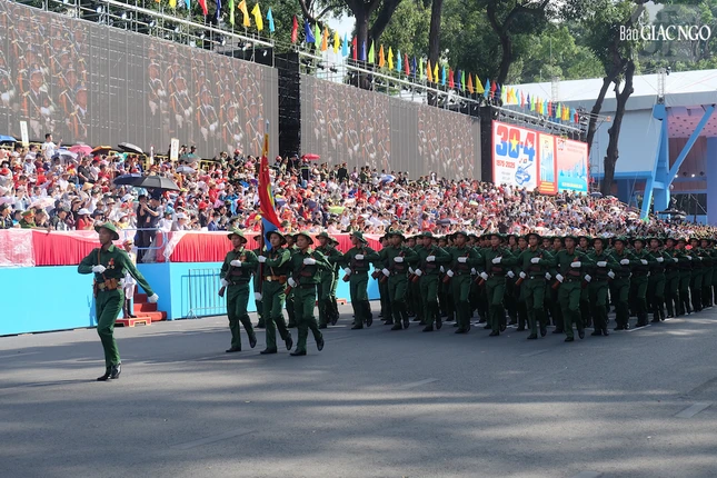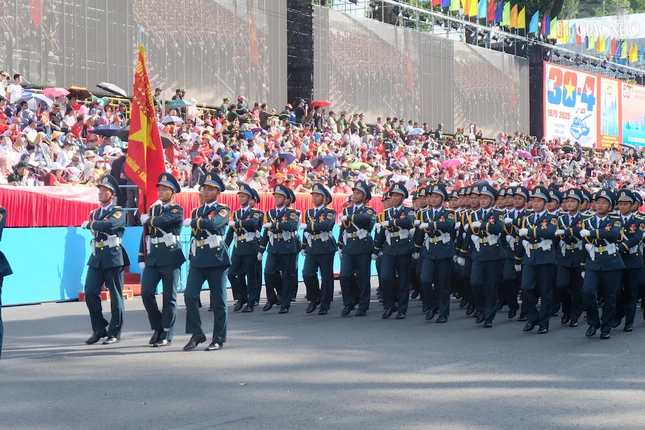 Đúng 8 giờ 7 phút, sau khẩu lệnh của Thượng tướng Nguyễn Văn Nghĩa, Phó Tổng tham mưu trưởng QĐND Việt Nam, cuộc diễu binh, diễu hành chính thức bắt đầu với biên đội trực thăng kéo cờ Đảng, cờ Tổ quốc và các biên đội chiến đấu cơ của Không quân bay trình diễn trên bầu trời TP.HCM. Tiếp đó, các khối diễu binh, diễu hành theo thứ tự gồm 4 khối nghi trượng; 23 khối quân đội và dân quân tự vệ; 12 khối công an; 12 khối diễu hành quần chúng.