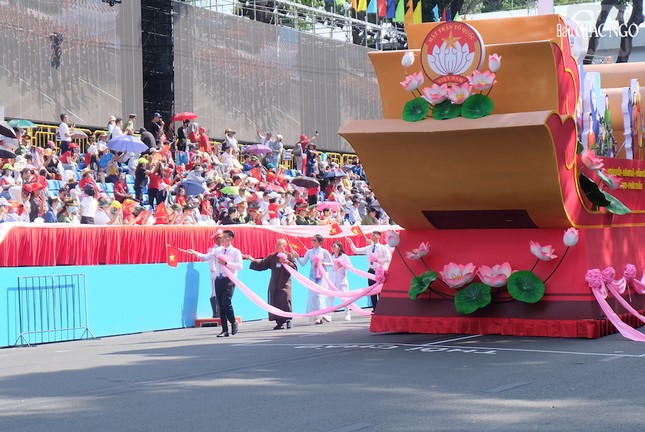 Sau khi đi qua lễ đài chính trên đường Lê Duẩn, các khối diễu binh, diễu hành tỏa theo 4 hướng, đi qua các tuyến đường trung tâm của thành phố giữa biển người chào đón.