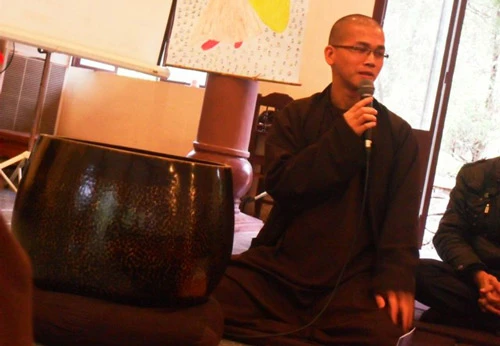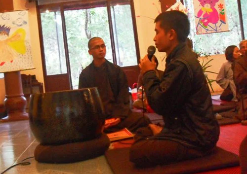 Thiền sinh giới thiệu về bản thân và điều muốn hỏi trước đại chúng (những người đến tham dự - PV)