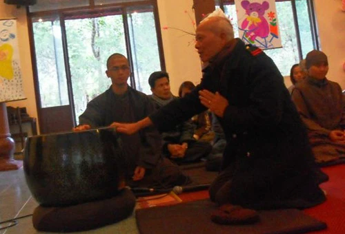 Sư Thầy đọc quẻ và ngâm thơ thẻ mà thiền sinh vừa bốc được.