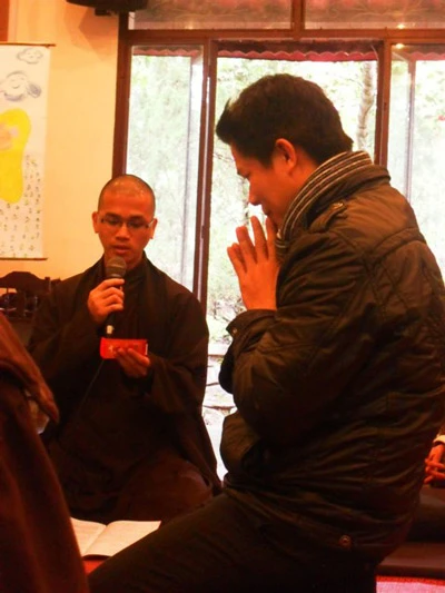 Sư Thầy (Chủ trì buổi bói Kiều - PV) hướng dẫn cho các thiền sinh đến dự bói Kiều