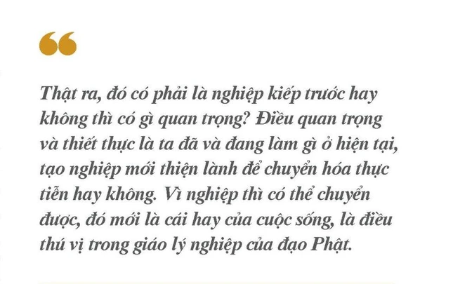 Thật ra, đó có phải là nghiệp kiếp trước hay không thì có gì quan trọng? Điều quan trọng và thiết thực là ta đã và đang làm gì ở hiện tại, tạo nghiệp mới thiện lành để chuyển hóa thực tiễn hay không. Vì nghiệp thì có thể chuyển được, đó mới là cái hay của cuộc sống, là điều thú vị trong giáo lý nghiệp của đạo Phật. Nếu Đức Phật cũng nói nghiệp như các vị ngoại đạo kia thì ta học theo Ngài để làm gì, vì nghiệp đâu có thay đổi được. Chính vì thế mỗi người học Phật, nên tìm hiểu và chiêm nghiệm sâu về những lời Đức Phật dạy để tránh những nhầm lẫn hay ngộ nhận đáng tiếc.