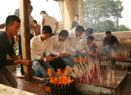 là ngôi chùa cổ That Luong, địa điểm nổi tiếng nhất thủ đô. Sau những trận đấu căng thẳng và mệt mỏi, tất cả các thành viên đội tuyển U23 Việt