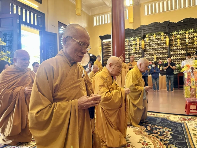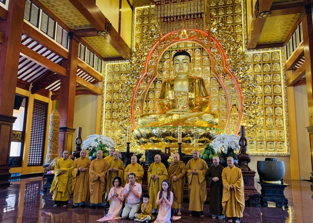 Cung đón tại Việt Nam Quốc Tự có Hòa thượng Thích Lệ Trang, Trưởng ban Nghi lễ Trung ương, Trưởng ban Trị sự GHPGVN TP.HCM cùng các vị trong Ban Trị sự Phật giáo TP.