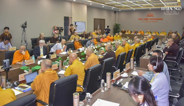 Buổi họp báo được diễn ra sau phiên thảo luận hai phiên làm việc của các đại biểu quốc tế và GHPGVN nhằm thống nhất các vấn đề quan trọng liên quan đến công tác tổ chức Đại lễ Vesak Liên Hiệp Quốc 2025.