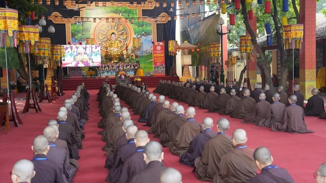 GNO - Nằm trong chương trình Đại giới đàn TP.Hà Nội, sáng 24-3, tại chùa Bằng, Hòa thượng Thích Bảo Nghiêm, Phó Chủ tịch Hội đồng Trị sự, Trưởng ban Trị sự GHPGVN Thủ đô, Trưởng ban Kiến đàn đã có thời pháp thoại giáo giới cho giới tử với chủ đề "Xác định lý tưởng, thực hành hạnh nguyện của người xuất gia".