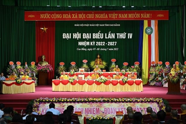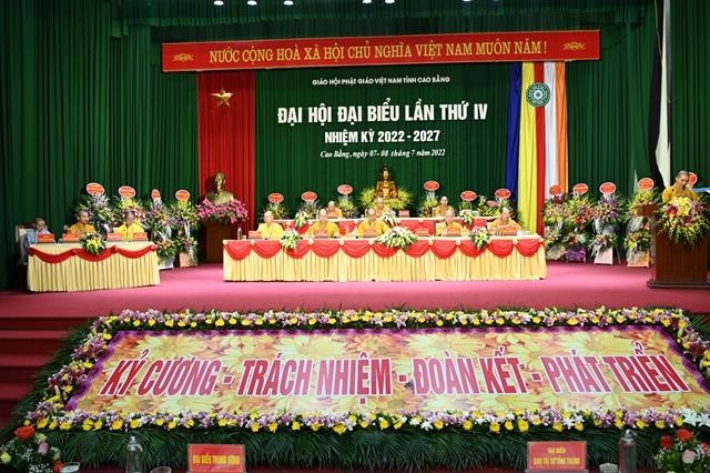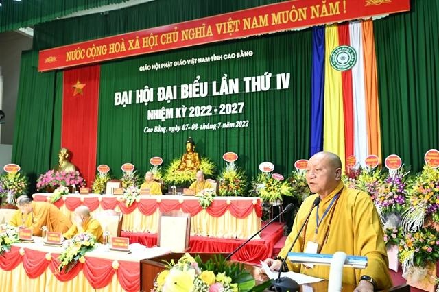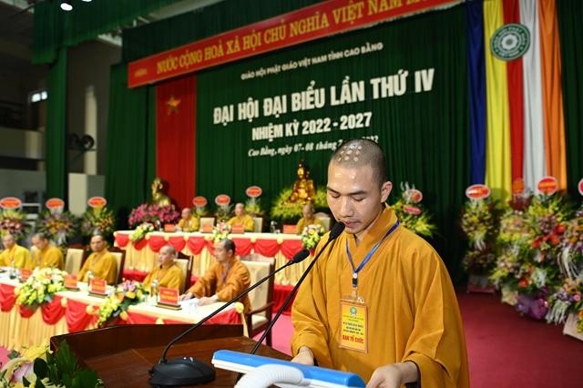 “Hôm nay, Ban Trị sự HPGVN tỉnh Cao Bằng trọng thể tổ chức Đại hội đại biểu Phật giáo tỉnh lần thứ IV, nhiệm kỳ 2022-2027. Đại hội có nhiệm vụ tổng kết các công tác Phật sự nhiệm kỳ qua; đánh giá, thảo luận những thành quả đã đạt được, rút ra những kinh nghiệm quý báu từ đó đề ra phương hướng hoạt động Phật sự nhiệm kỳ tới”, Hòa thượng Trưởng ban Tổ chức Đại hội nhấn mạnh.