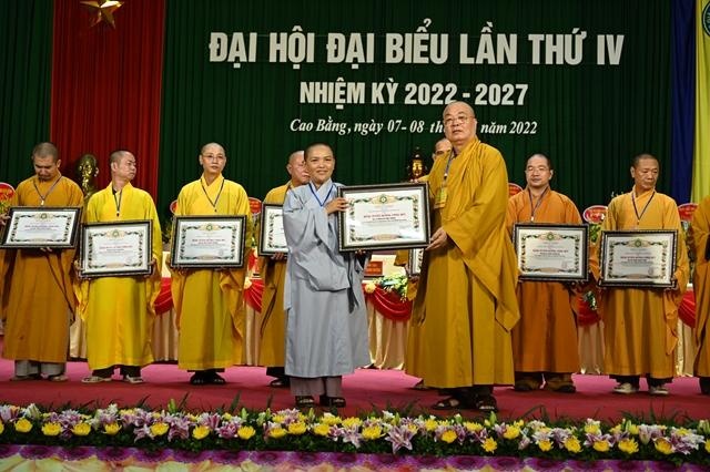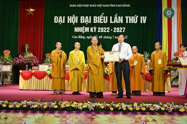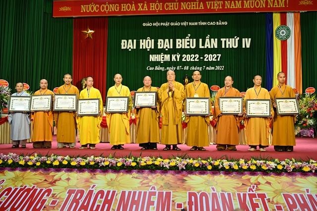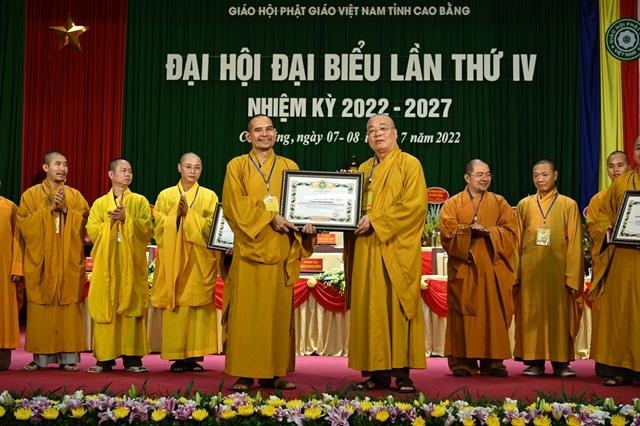 Dịp này, Hội đồng Trị sự GHPGVN, Thủ tướng Chính phủ, UBND, UBMTTQ tỉnh Cao Bằng đã tặng Bằng tuyên dương công đức, Bằng khen đến Ban Trị sự GHPGVN tỉnh Cao Bằng khóa III, Hòa thượng Thích Gia Quang và các cá nhân đã có những đóng góp tích cực cho các hoạt động Phật sự trong nhiệm kỳ qua.