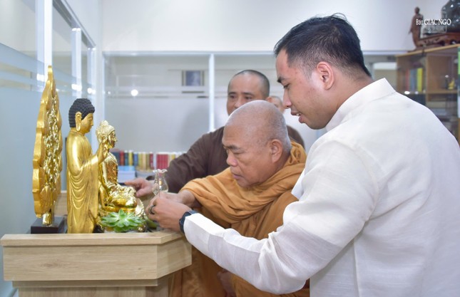 Trong ngày làm việc đầu năm, Hòa thượng Thích Giác Toàn và Thượng tọa Tổng Biên tập đã thăm các phòng ban, bộ phận làm việc tại trụ sở tòa soạn.