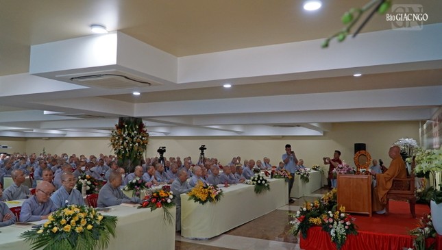 Theo đó, trong khuôn khổ khóa bồi dưỡng về luật, các pháp yết-ma, nghi lễ từ ngày 24 - 25-4, do Phân ban Ni giới T.Ư tổ chức, Hòa thượng Thích Lệ Trang đã chia sẻ với 400 vị Ni thuộc 55 đơn vị Phân ban Ni giới tỉnh thành về vai trò của giới sư, thầy nghiệp sư trong đại giới đàn.