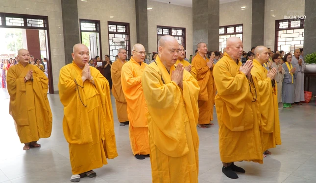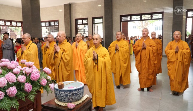 Tại buổi lễ, Hòa thượng Thích Lệ Trang đã niêm hương bạch Phật, cùng đại chúng đảnh lễ Tam bảo và tụng sám Khánh đản.