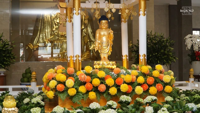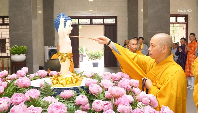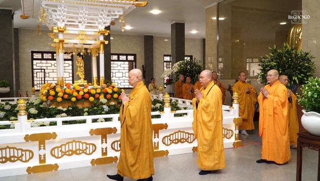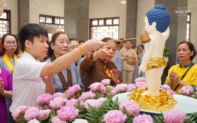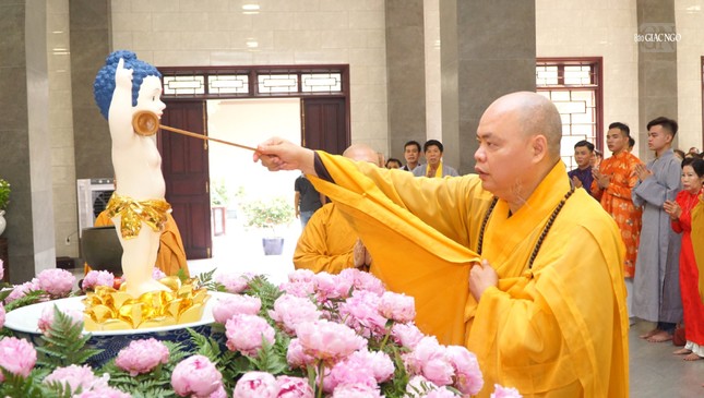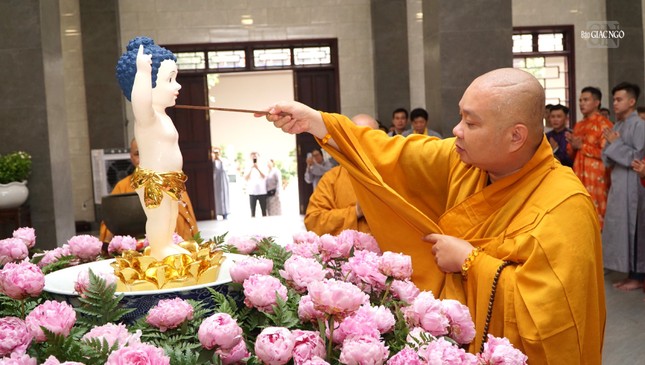 Dịp này, Hòa thượng Trưởng ban Trị sự GHPGVN TP.HCM cũng đã có thời pháp thoại chia sẻ với đại chúng về ý nghĩa đản sanh của Đức Thế Tôn. Sau đó, Hòa thượng cùng chư tôn đức, Phật tử tuần tự cử hành nghi thức Tắm Phật truyền thống và hữu nhiễu quanh lễ đài Đức Phật đản sinh trong không khí trang nghiêm, thanh tịnh.