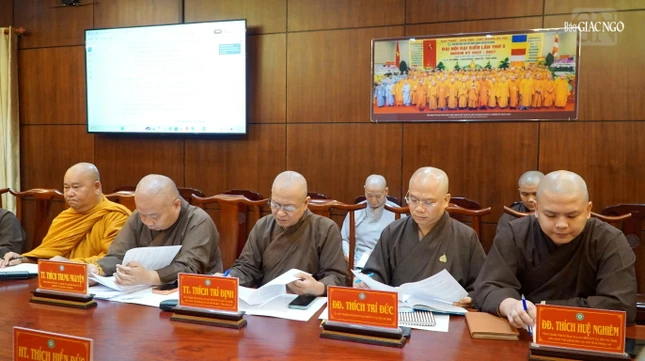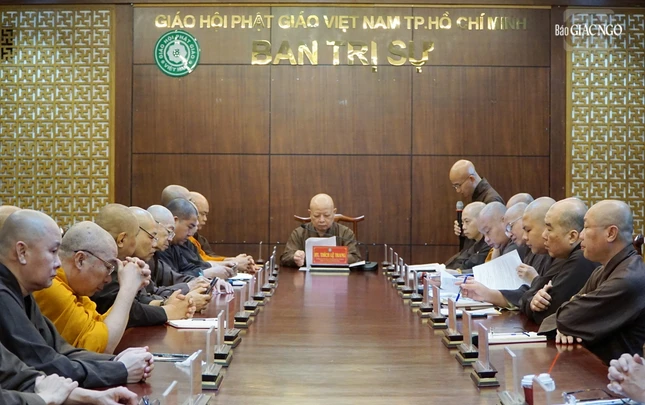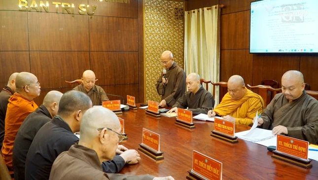 Buổi họp với sự chủ trì của Hòa thượng Thích Lệ Trang, Phó Chủ tịch Hội đồng Trị sự, Trưởng ban Trị sự GHPGVN TP.HCM, cùng chư tôn đức Ban Thường trực.