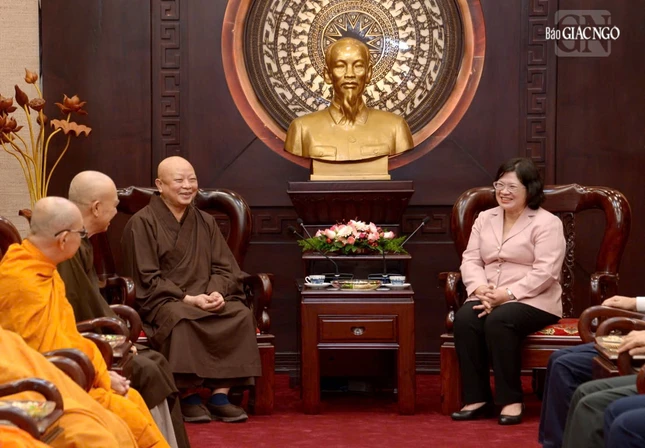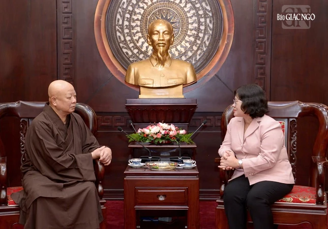 Hòa thượng Thích Lệ Trang và Phó Bí thư Thành ủy TP.HCM Văn Thị Bạch Tuyết |