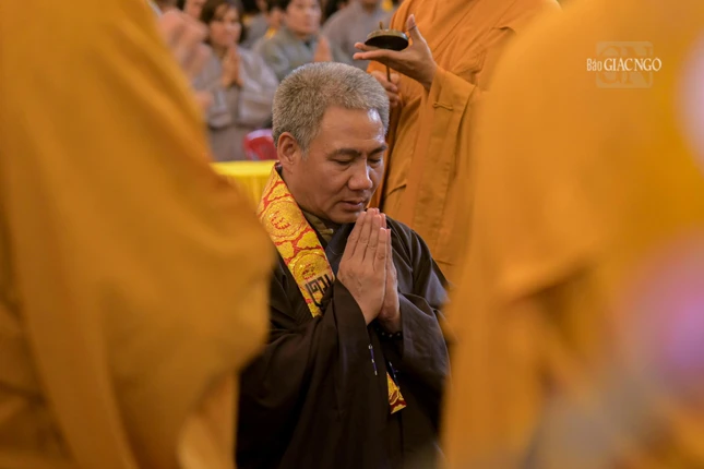 Theo đó, Hòa thượng Thích Lệ Trang làm gia trì sư, cùng chư tôn đức Ban Nghi lễ, Ban Trị sự GHPGVN TP.HCM thực hiện khoa nghi cam lộ thí thực, nhằm cầu nguyện chư hương linh Cửu huyền thất Tổ, anh linh chư vị anh hùng, liệt sĩ, các y bác sĩ tuyến đầu, đồng bào qua đời trong đại dịch Covid-19 được siêu sinh về cõi an lành.
