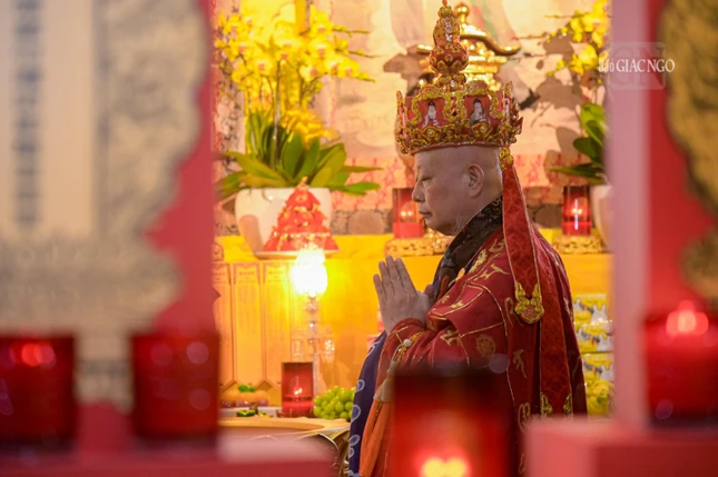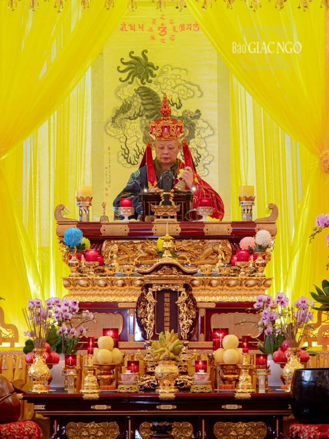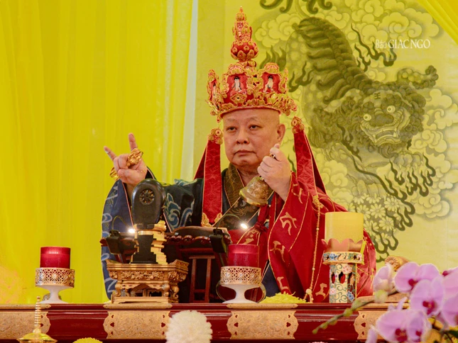 GNO - Chiều 15-8 (12-7-Giáp Thìn), Hòa thượng Thích Lệ Trang, Trưởng ban Nghi lễ T.Ư, Trưởng ban Trị sự GHPGVN TP.HCM làm gia trì sư đăng đàn chẩn tế âm linh cô hồn theo khoa nghi phổ thí cam lộ trong Pháp hội Vu lan - Báo hiếu Phật lịch 2568, tại Việt Nam Quốc Tự.