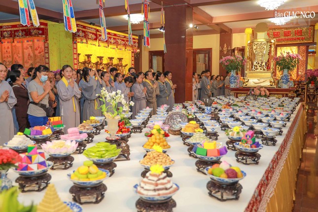 GNO - Chiều 3-9 (12-7-Ất Tỵ), theo chương trình Pháp hội Vu lan Phật lịch 2569 tại Việt Nam Quốc Tự (P.Hòa Hưng), lễ chẩn tế, siêu tiến chư hương linh, anh linh liệt sĩ, chiến sĩ, các y bác sĩ, tình nguyện viên, đồng bào qua đời trong đại dịch Covid-19 và bạt độ chư âm linh cô hồn... đã được trang nghiêm cử hành.
