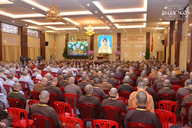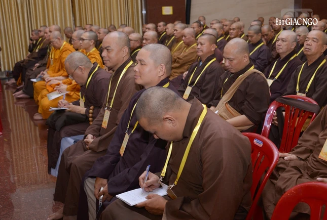 Hội chúng lắng nghe Hòa thượng Thích Lệ Trang đã giải thích về ý nghĩa và vai trò của nghi lễ trong đời sống thiền môn và văn hóa dân tộc |