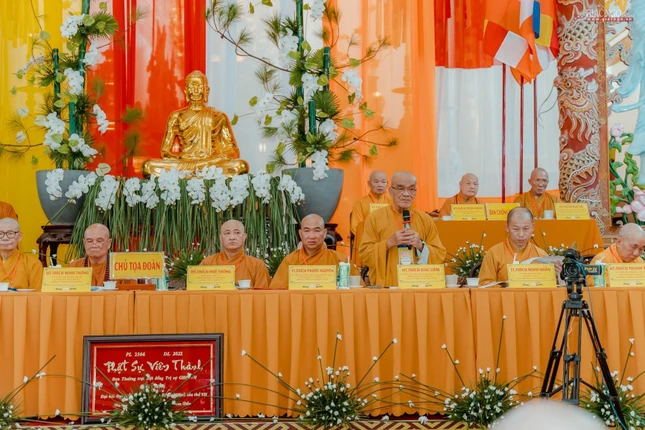 Đoàn chủ tọa gồm Hòa thượng Thích Minh Thông, Ủy viên Hội đồng Trị sự, Quyền Trưởng ban Trị sự GHPGVN tỉnh Khánh Hòa, Trưởng ban Tổ chức Đại hội; Hòa thượng Thích Huệ Thông, Phó Tổng Thư ký, Chánh Văn phòng II Trung ương GHPGVN cùng chư vị Phó Văn phòng II Trung ương, Ban Thường trực Hội đồng Trị sự, Ban Thường trực Ban Trị sự GHPGVN tỉnh Khánh Hòa.